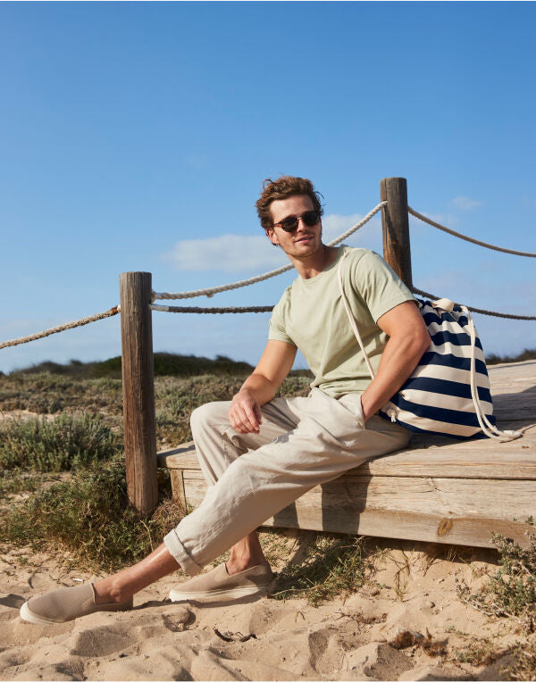 Carry your essentials in style with the Nautical Gymsac, featuring a classic printed stripe design that adds a touch of premium, casual elegance. Crafted for versatility, it comes with dual-purpose grab handles and hanging loops for easy carrying or storage.
